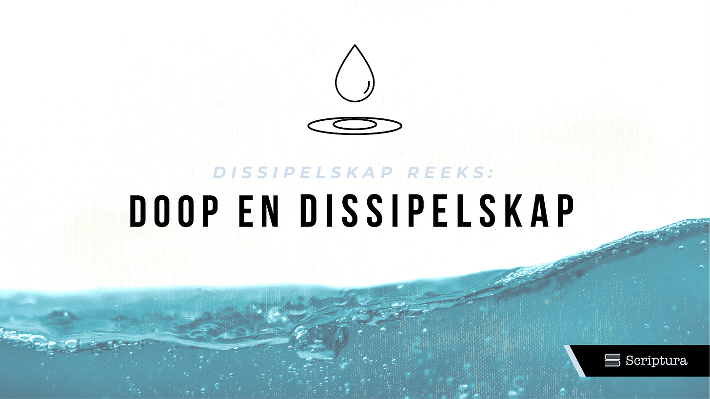 Die gereformeerde formulier vir die bediening van die heilige doop aan kinders sê: “Die heilige doop betuig en verseël AAN ons die afwassing van die sondes deur Jesus Christus. ” Christen ouers doop hul kinders uit die besef van sonde en uit gehoorsaamheid aan ons dissipelskap opdrag teenoor alle mense en teenoor ons kinders. Ons doop hulle ook uit dankbaarheid vir die genade van vergifnis van sonde en belofte van redding wat God aan ons kinders betoon – en ons kan nie anders as om die opdrag om ons kinders te laat doop te eer en dit voort te sit in die generasies wat na ons volg nie. Dissipels van Jesus dissipel ook hul kinders en voed hulle op in die vrees en in die weë van die Here, sodat hulle ook weer die geloof in God in hul eie lewe kan voortsit. En die formulier lees verder: “Want as ons in die naam van die Vader gedoop word, betuig en verseël die Vader aan ons dat Hy ‘n ewige genadeverbond met ons oprig, ons tot Sy kinders en erfgename aanneem, en ons daarom met alle goeie dinge wil versorg en alle kwaad van ons wil afweer, of tot ons beswil beskik.” Doop is dus ‘n direkte uitvloei van ons getuienis van ons geloof in die evangelie, en dus ook ons eerste poging om ons kinders te dissipel vir die koninkryk van God.