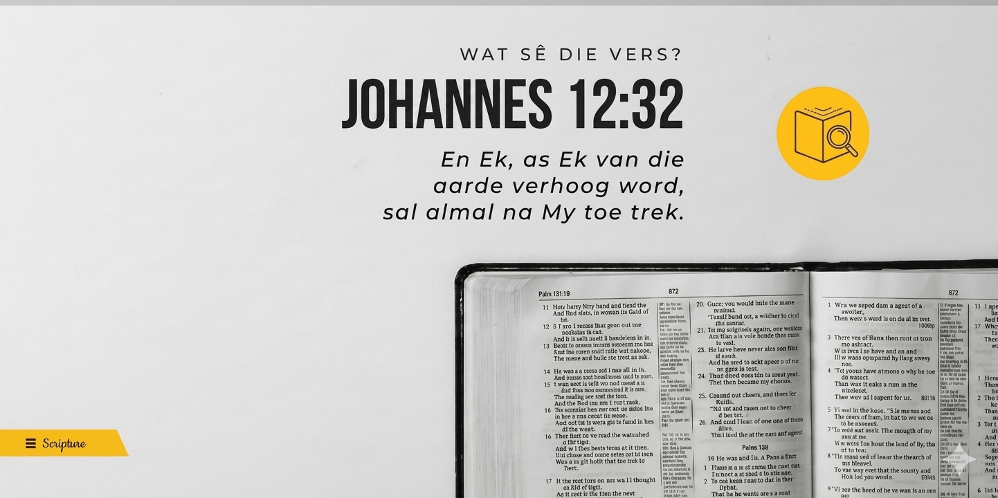 “En Ek, as Ek van die aarde verhoog word, sal almal na My toe trek.”